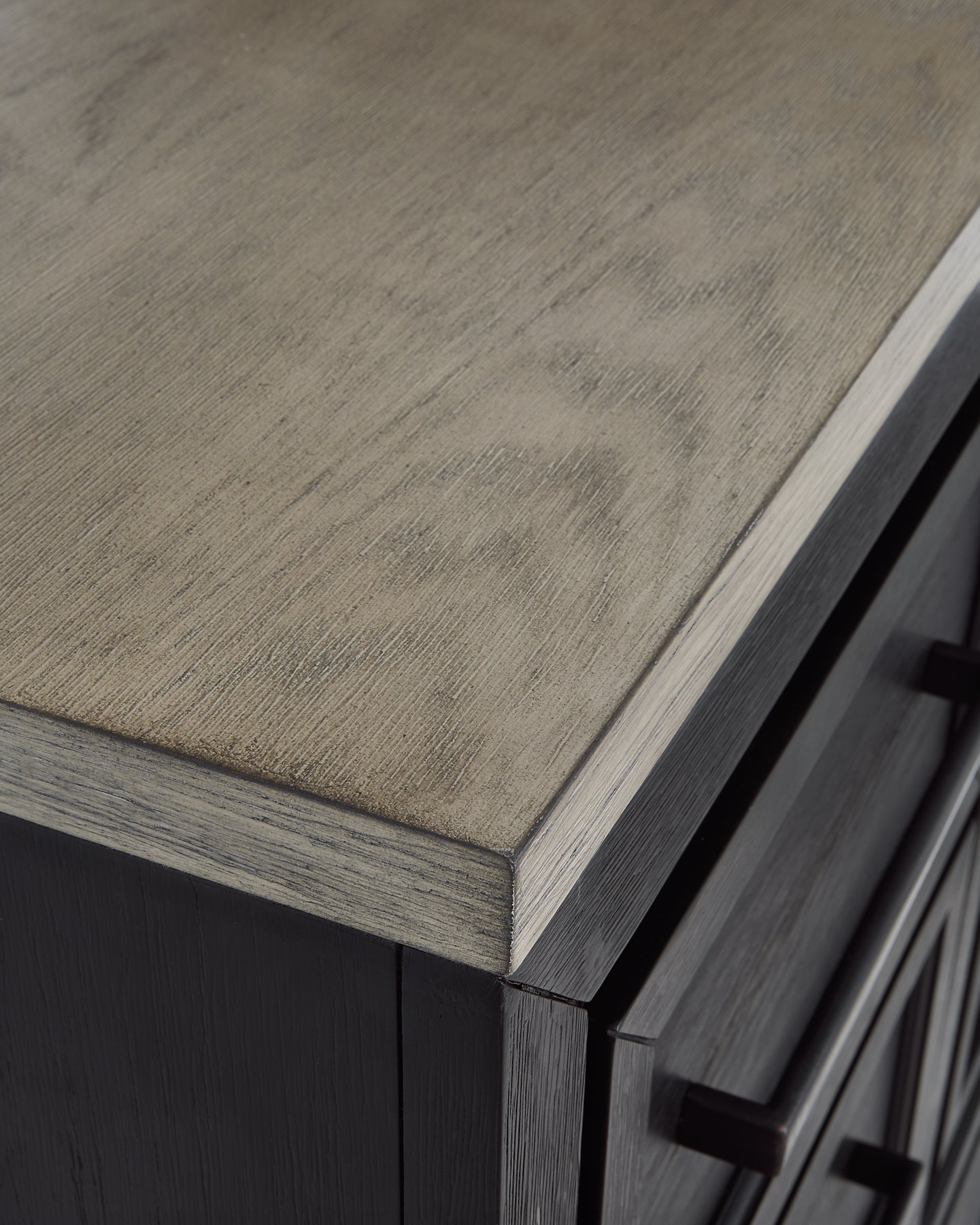 Details | B989B5: Includes California king panel headboard, storage footboard, and rails with roll slats, Made with hardwood solids, select oak veneers and engineered wood, Two-tone finish (brushed black and dusty grayish brown wood tone), Headboard with picture frame moulding, Footboard with two deep drawers, Smooth-gliding soft-close drawers with fully finished interiors and dovetail construction, Sleek drawer pulls with black finish, Bed does not require additional foundation/box spring; accommodates most zero clearance adjustable bases with the addition of a bunkie board, Mattress available, sold separately, Assembly required, B989B1: Includes dresser and mirror, Made with hardwood solids, select oak veneers and engineered wood, Two-tone finish (brushed black and dusty grayish brown wood tone), Sleek drawer pulls with black finish, 11 soft-close, smooth-gliding drawers with fully finished interiors and dovetail construction (top drawers felt lined), 5 drawers with brushed black finish; 6 drawers with grayish brown wood tone, 3 drawers located behind each door, Mirror mounts to back of dresser, Assembly required, B989-48: Made with hardwood solids, select oak veneers and engineered wood, Two-tone finish (brushed black and dusty grayish brown wood tone), Sleek drawer pulls with black finish, 5 soft-close, smooth-gliding drawers with fully finished interiors and dovetail construction (top drawers felt lined), 3 pull-out trays (felt lined) and 2 adjustable shelves behind door, | |