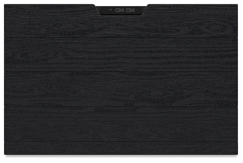 | Details | Made with pine solids, veneers and engineered wood substrate, Textured black wood stain with waxy topcoat, Hardware-less design, 2 drawers with fully finished interiors, dovetail construction and ball-bearing side glides, 110V power supply with dual USB charging ports, Power cord included; UL Listed | |