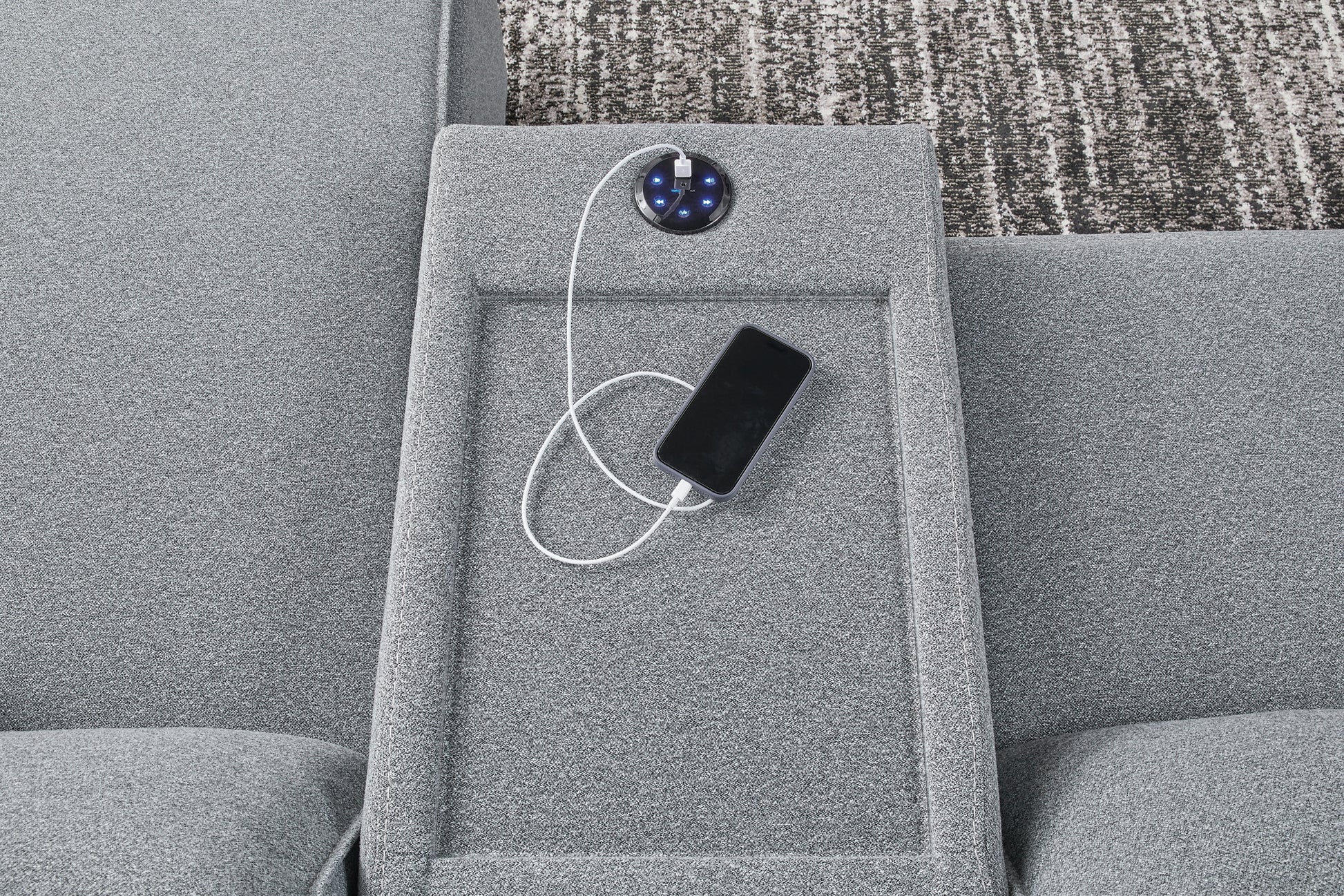 | Details | Includes 7 modular pieces: left-arm facing power recliner, power armless recliner, armless chair, wedge, 2 consoles with audio systems and right-arm facing power reclining back chaise, "Left-arm" and "right-arm" describe the position of the arm when you face the piece, Versatile modular pieces fit together in a variety of configurations, One-touch power control with adjustable positions, Easy View™ adjustable headrest and zero-draw USB port, Zero-draw technology only consumes power when the USB receptacle is in use, Corner-blocked frame with metal reinforced seat; attached seat and back cushions; high-quality foam cushions wrapped in poly fiber, Polyester upholstery; Next-Gen Nuvella™ is a family-friendly fabric that is soft, easy to clean, stain-resistant and durable, Clean fabric with mild soap and water, let air dry; for stubborn stains, use a solution of 4 oz. bleach to 28 oz. water, Throw pillows with easy-to-remove zippered covers for machine washing; pillows with soft polyfill, Console with plexiglass top; built-in audio sound system with wireless connectivity; audio controls located on console; USB charging, Zero wall recliner design requires minimal space between wall and chair back, Power cord included; UL Listed | |