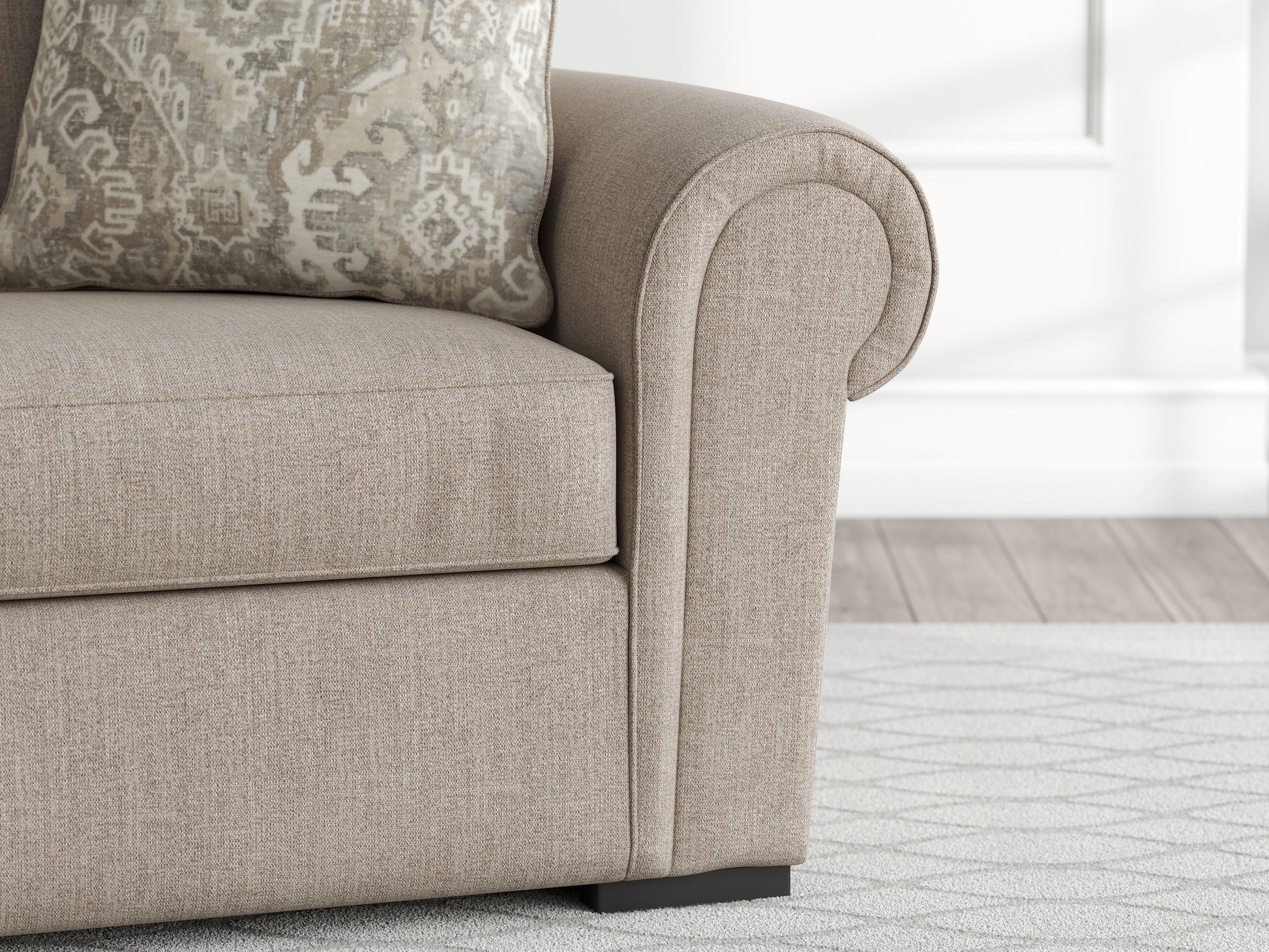 | Details | Corner-blocked frame, Reversible back and seat cushions, High-quality foam cushions wrapped in poly fiber, Accent pillow included, Pillow with soft polyfill, Polyester upholstery, Low-profile accent legs with faux wood finish, Platform foundation system resists sagging 3x better than spring system after 20,000 testing cycles by providing more even support, Smooth platform foundation maintains tight, wrinkle-free look without dips or sags that can occur over time with sinuous spring foundations | |